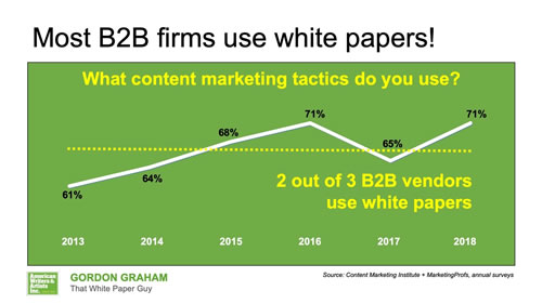 In fact, annual surveys since 2013 have shown that two out of three Business-to-Business marketers use White Papers.