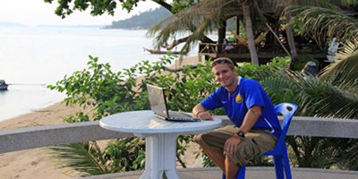 It’s easy to “set up shop” and get work done … even in an off-the-grid beach town like Sihanoukville. I’ll usually roll out of bed around 7:50 a.m. I’ll then make my bed, brush my teeth, grab my netbook or iPad … walk a few steps to the restaurant in the resort where I live (I’m currently staying at a resort called “Beach Road” for just $13 a night with air-con, hot water, cable TV, and a pool), and order some oatmeal with banana slices and scrambled eggs for about $2. Then, from about 8:30 a.m. to 11:30 a.m., I work remotely on my copywriting. Once I’ve got my writing done, I’ve got the rest of the day to enjoy all the spoils of living in a cheap, fun beach town like Sihanoukville.