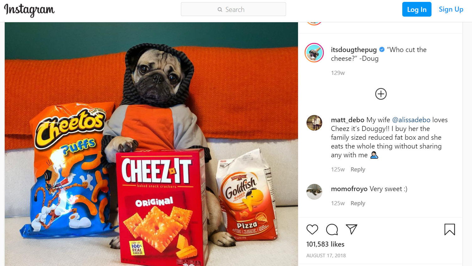 So don’t you think it’s worth it for the brands that make Cheetos and Cheez-Its to pay a few thousand bucks to get a post like this on his Instagram feed?